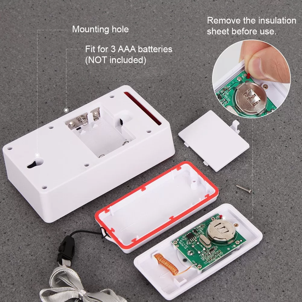 Battery powered: Receiver uses 3 AAA batteries; call button uses 1 CR2032 battery (not included).